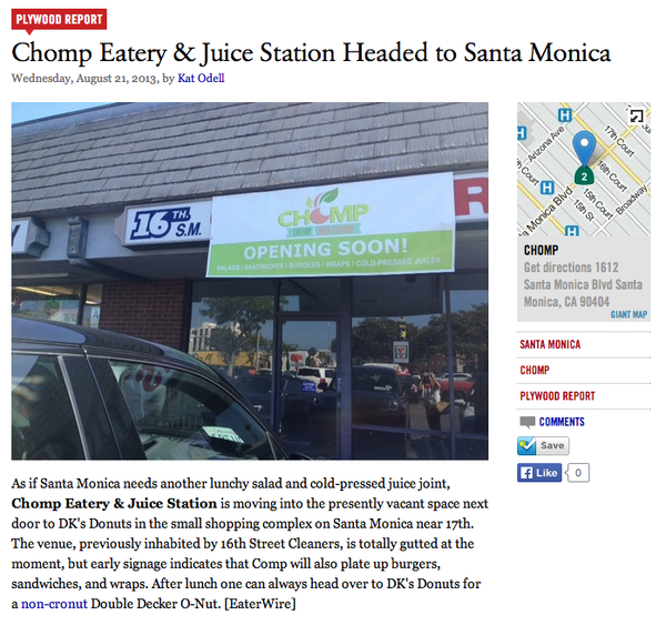 Chomp Eatery & Juice Station Headed to Santa Monica August 21 2013